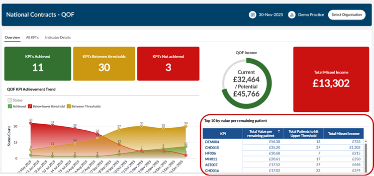 We recommend monitoring this throughout the fiscal year but especially in Q4 as it will usually be a key element in determining your practice priorities for QOF work.
